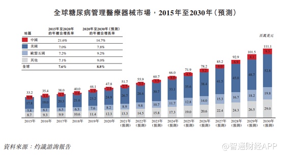 根据灼识咨询报告,中国糖尿病管理医疗器械市场的市场规模,以21.6%的年复合增长率从2015年的9亿美元增至2020年的24亿美元,预期在2030年将进一步增至95亿美元,预期2020年至2030年的年复合增长率将为14.7%。全球糖尿病管理医疗器械市场的市场规模从2015年的332亿美元增至2020年的478亿美元,年复合增长率为7.6%,预计2030年将进一步增至1111亿美元,预期2020年至2030年的年复合增长率为8.8%。