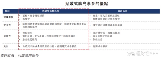 面对如此大的市场,国内不少医疗器械企业跃跃欲试,微泰医疗就是专注于糖尿病医疗器械研发的企业之一。其核心产品胰岛素泵,就是一种有效的糖尿病管理医疗器械,用于需要胰岛素治疗的1型糖尿病和2型糖尿病患者的胰岛素输注。胰岛素泵可分为无导管贴敷式泵和管路式胰岛素泵。相比于管路式泵,无导管贴敷式泵具有前期购买成本低、依从性高等优势。