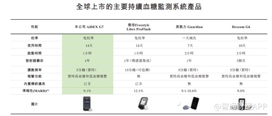 除了Equil外,公司的另一款核心产品是血糖监测系统AiDEX G7。与Equil国内无竞争对手相比,AiDEX G7的竞争优势就没那么明显,尽管其使用寿命高达四年,远远优于其他产品,但是9.1%的准确性并不优秀。