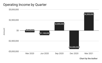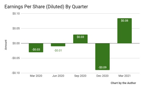 一季度每股收益也从2020年四季度的亏损强劲反弹: