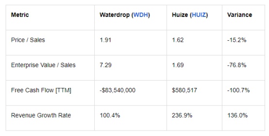 下表为可比上市公司水滴公司(WDH)与慧择(HUIZ) 主要估值指标的对比:
