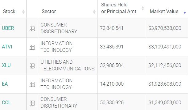 电子艺界(EA.US)位列第四,仓约1421万股,持仓市值约19.2亿美元。