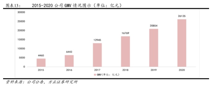 GMV:2020年公司12个月GMV实现26125亿元,同比去年增长27%。