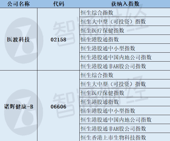 医渡科技(02158)、诺辉健康-B(06606)和心通医疗-B(02160)三家公司被纳入了多个恒生基准指数和主题指数。赛生药业(06600)获纳入恒生香港上市生物科技指数。