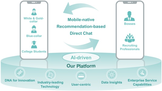 据招股书介绍,该公司具有行业开创性的直聘模式,提升了企业招聘与个人求职效率。直聘模式以移动端为核心、以智能匹配为基础、让求职者与企业端用户进行线上直聊。该公司秉持高度尊重求职者的经营理念,求职者可选择性地对企业端用户隐藏信息;经求职者确认许可后,企业端用户才能访问求职者联系方式和完整简历。