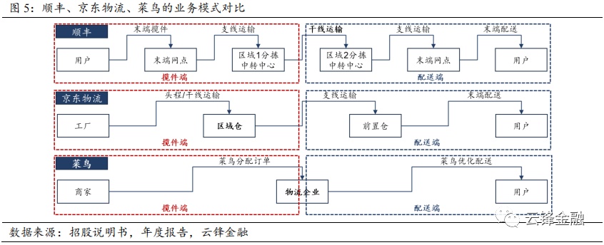 京东物流(02618)凭借“仓储资源”缩短配送距离。京东物流以仓储(京东集团借助自身资金优势自建仓库,并以成本价租赁给京东物流)为重要依托,打造“区域仓—前置仓—末端网点派送”的“以仓代运”物流模式,直接改变货物运输的距离来实现运输时间的缩短,其能够于下单当日或次日将京东集团在线零售订单总量的约90%送达终端消费者。
