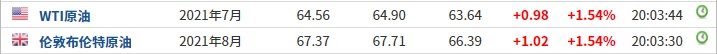 截至发稿,WTI原油涨1.54%,报64.56美元/桶。布伦特原油涨1.54%,报67.37美元/桶。
