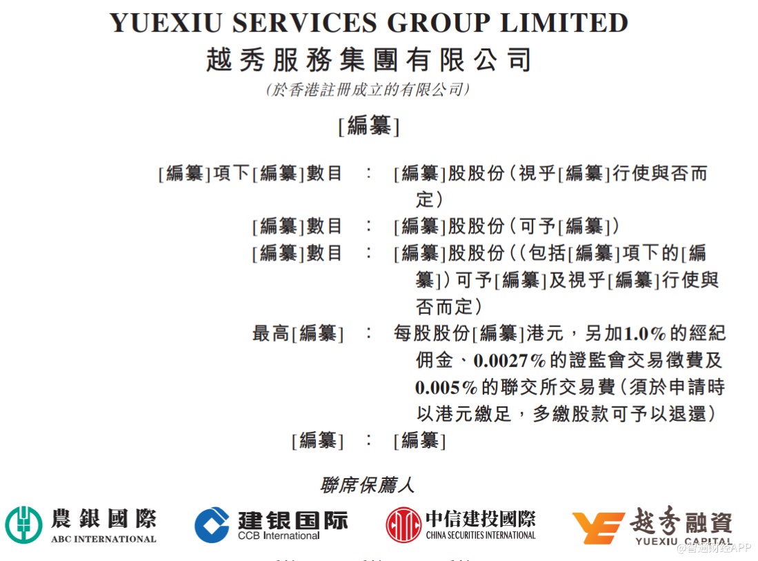 智通财经APP获悉,据港交所5月24日披露,越秀服务集团通过港交所主板上市聆讯,农银国际、建银国际、中信建投国际及越秀融资为其联席保荐人。