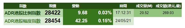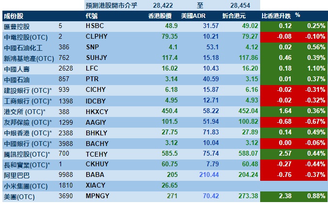 智通财经APP获悉,周一美股三大指数齐涨,港股ADR指数上涨,按比例计算,收报28422点,涨9.68点或0.03%。