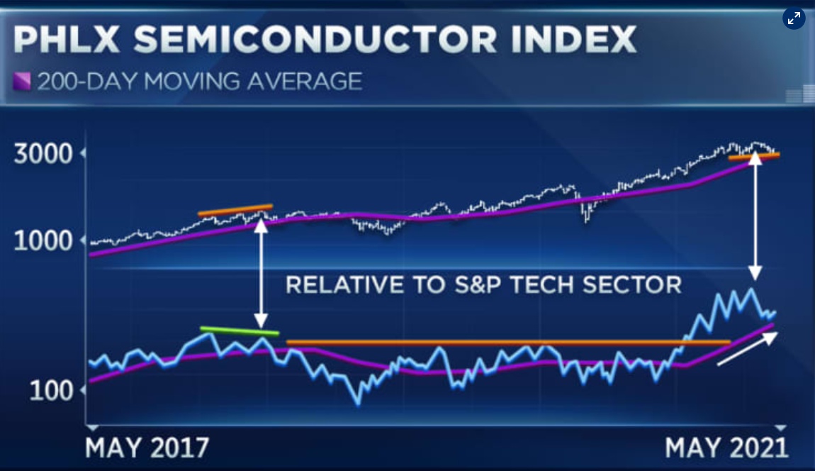 Oppenheimer技术分析师主管Ari Wald重申了对半导体行业的乐观态度。他在电视节目中表示,半导体行业正从强势位置进行调整,具体而言,费城半导体指数(SOX)与科技板块之间的差值于4月份达到新高。