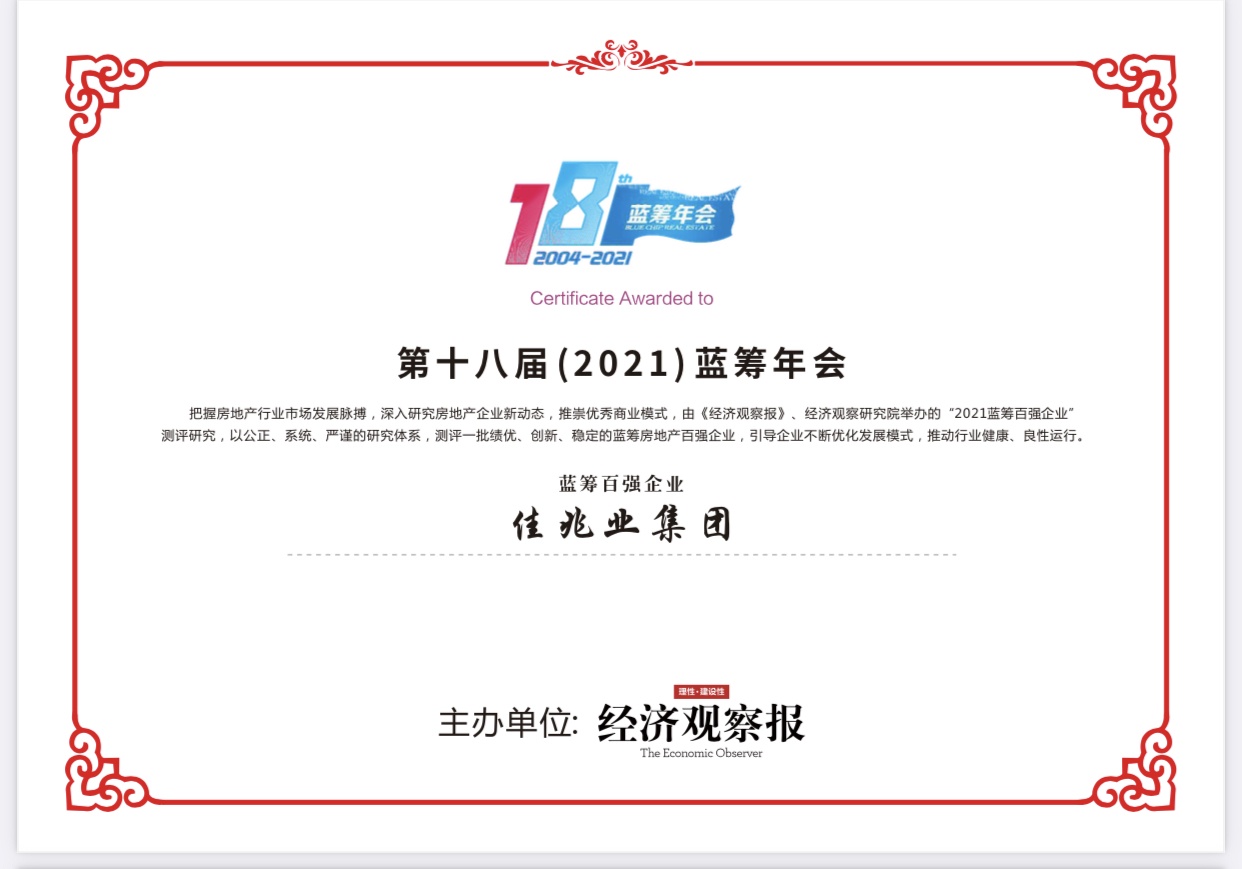 智通财经APP获悉,5月25日,由《经济观察报》主办的第“十八届(2021)蓝筹年会”在北京举行,凭借创新的战略布局、稳健的运营能力、优异的经营表现,佳兆业集团(01638)荣获“蓝筹百强企业”“年度最具投资价值企业”“2021品牌价值典范企业”“卓越科技引领十强企业”四项殊荣。