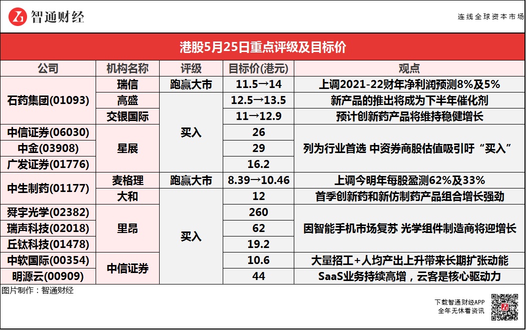 高盛称,石药集团(01093)新产品的推出将成为下半年催化剂,预计其全年研发费用为34亿元,上调2021-23年净利润预测为7.6%/4.2%/5.9%;
