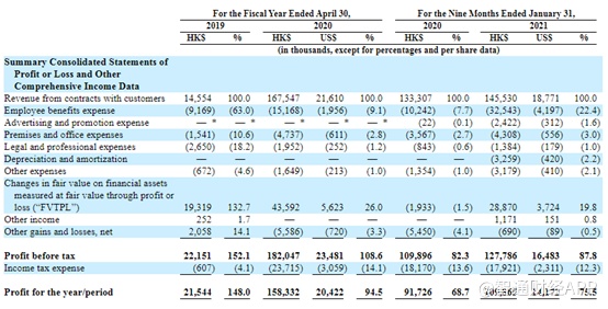 与此同时,2019和2020财年,公司的资本支出为零,2021财年首九个月内,公司的资本支出为20万港元,未来公司打算用现有的现金和银行结余为未来的资本支出提供资金,实现业务的增长。