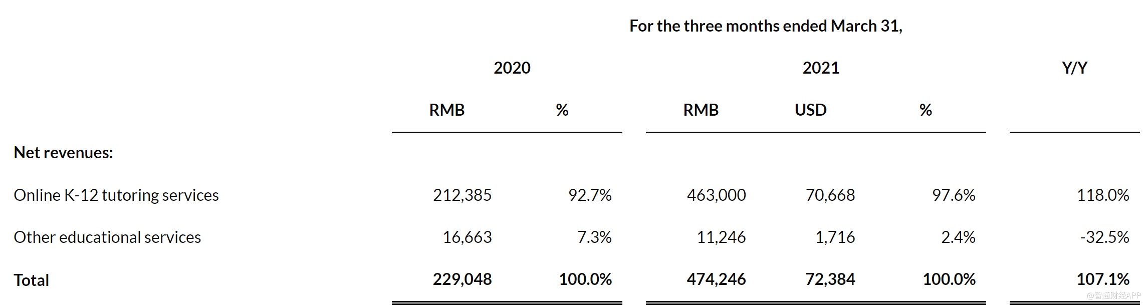 智通财经APP了解到,5月25日,一起教育科技发布2021年Q1财报,实现收入4.74亿元,同比增长107.1%,超出业绩指引上限。