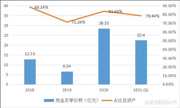 该公司账上现金充裕,截止2021年3月,拥有22.4亿元的现金,占比总资产达78.44%,且负债率低,扣去递延收益为23.1%,没有有息债,未来或通过投资并购方式,加大布局以提高在行业的市场份额以及领导地位。