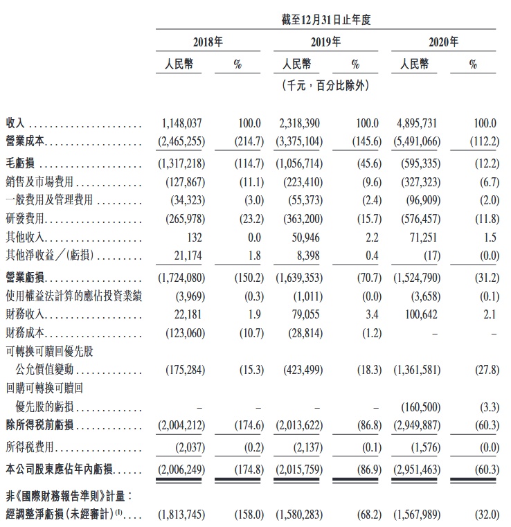 财务方面,2018-2020财政年度,该公司营收分别为11.48亿元(人民币,下同)、23.18亿元及48.96亿元。
