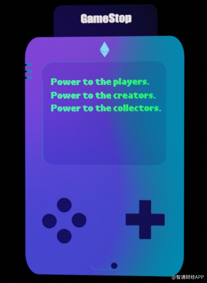 该公司的NFT网站nft.gamestop.com在近日被一些以太坊社区成员发现,消息在社交媒体上疯传。这个网站看起来非常复古,首页上一部游戏机缓缓打出三句话,“权力属于玩家;权力属于创作者;权力属于收藏家”。
