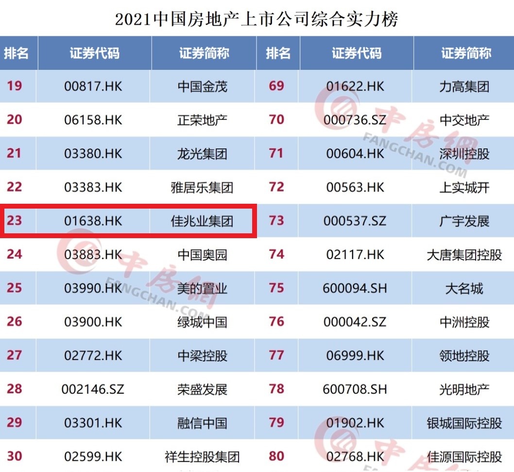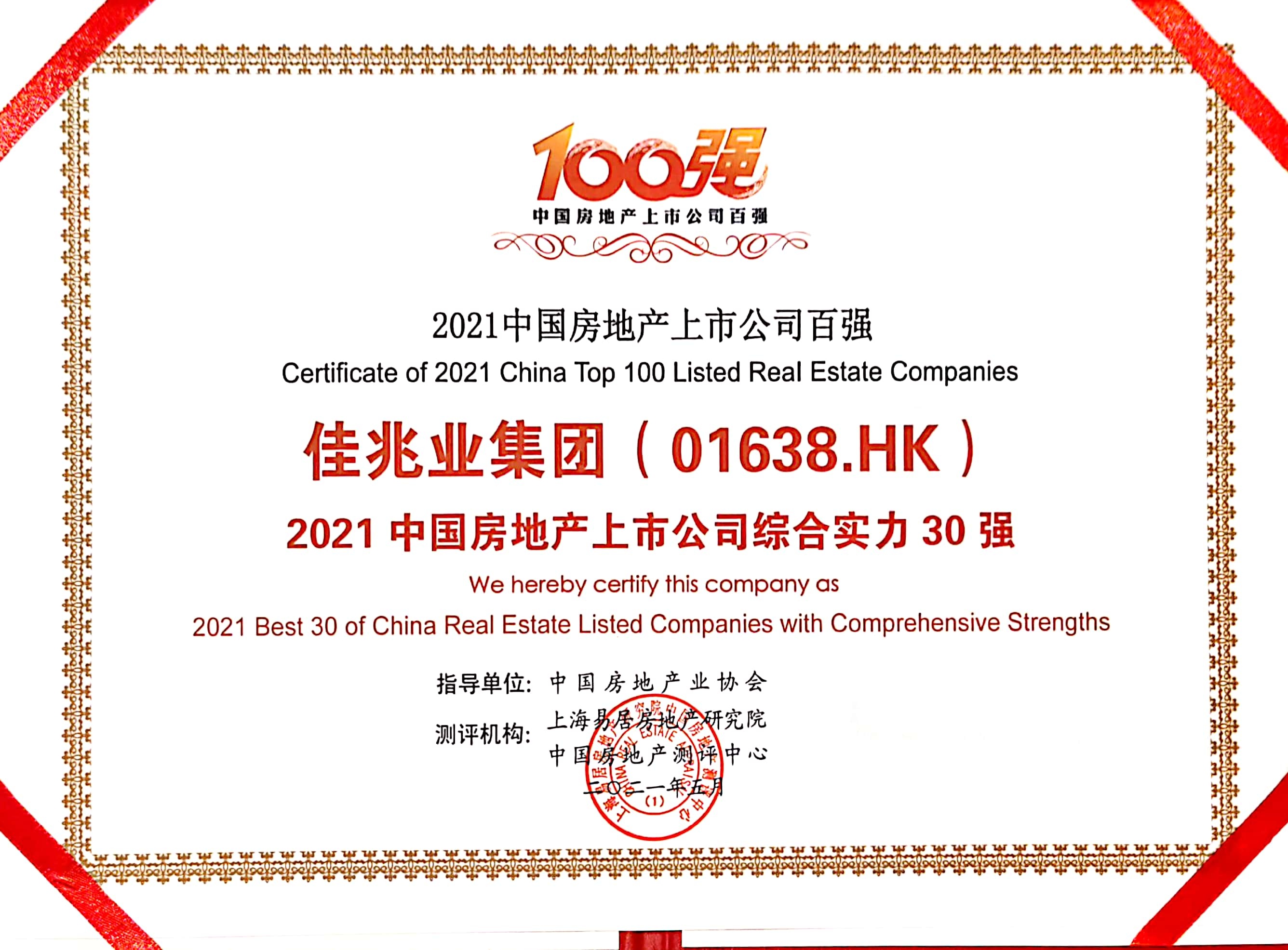 智通财经APP获悉,5月27日,由中国房地产业协会、上海易居房地产研究院中国房地产测评中心联合主办的“2021中国房地产上市公司测评成果发布会”在深圳举办,佳兆业集团(01638)获评“2021中国房地产上市公司综合实力”23强,排名连续三年稳健增长,跨越式发展获权威机构及资本市场认可。