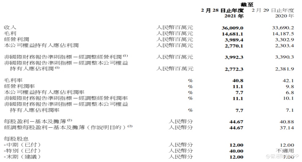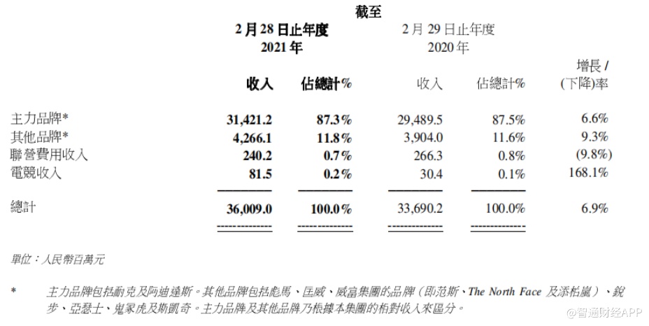滔搏财报显示,截至2021年2月28日止年度,集团实现营收360.09亿元(人民币,下同),同比增加6.88%;公司权益持有人应占溢利27.7亿元,同比增加20.26%。两项指标增速分别较2019/20财年提升3.42个百分点和15.55个百分点。