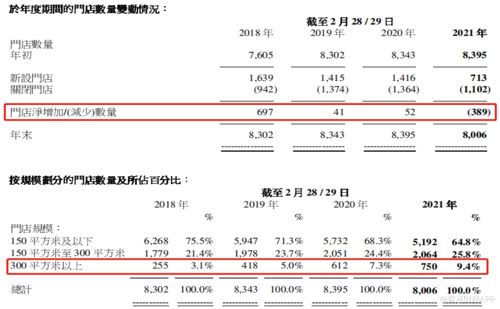 除此之外,滔搏过去很长一段时间通过扩大门店数量,来提升销售业绩的做法也在2020/21财年告一段落。全年,公司新开门店数量为713间,关闭门店1102间,门店净减少389间,门店总数由上年同期的8395间减少至8006间。