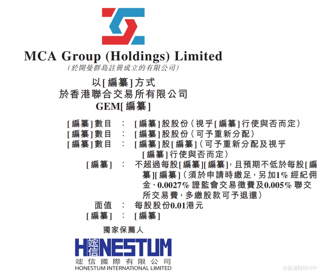智通财经APP获悉,据港交所5月27日披露,MCA Group(Holdings)Limited向港交所创业板递交上市申请,宏信国际有限公司为独家保荐人。