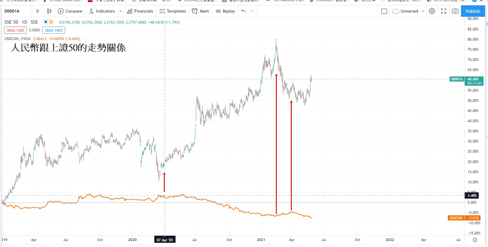 我们开始分析股市的走势,近日人民币升势强劲,人民币兑每美元中间价报6.3858,并为2018年5月底以来最高。我们发现人民币每次转强,都会令到上证50走势上升。