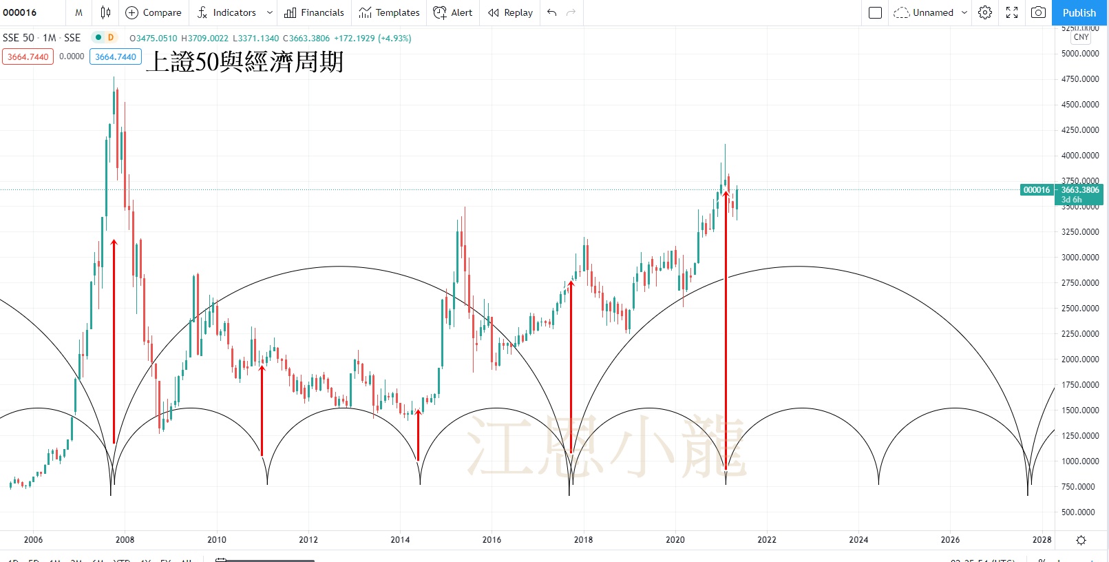 其实我们认为股市短线的走势仍是反弹,但是我们利用经济周期分析,其中一个周期汇聚的时间在2021年2月份。而这周期由2007年延伸至今有一定的参考性。