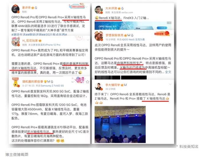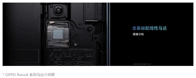 OPPO产品经理吴荻在发布会上表示:“在Pro和Pro+两款手机上,我们在纤薄机身里定制了一颗X轴线性马达,全面支持和平精英高品质可调节振感,真正给大家带来逼真的振感体验。除游戏外,这个清脆的振感也可以把屏幕变成非常有手感的键盘。我相信,Reno6系列做的振感调节,会让大家用了以后就不想再回去了。”