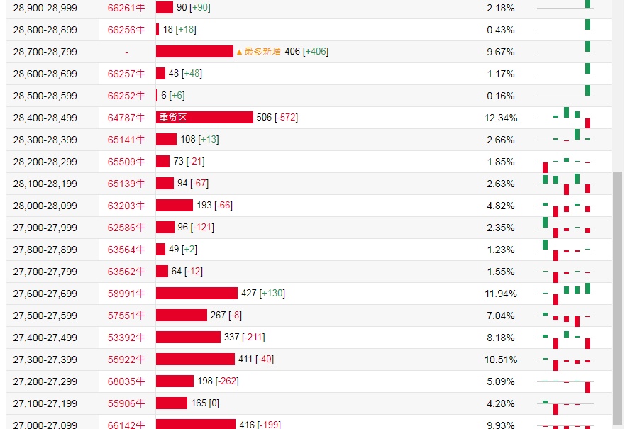 牛证街货重货区在28400-28499区间,该区间最新牛证数量为506张,较上一交易日减少572张;最多新增在28700-28799区间,该区间最新牛证数量为406张,较上一交易日增加406张。