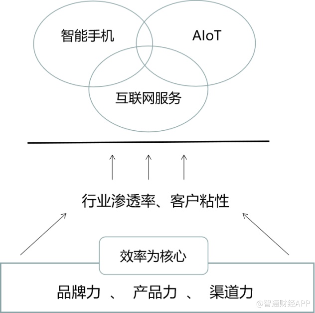其中,手机更强调核心力,AIoT更强调生态力,核心战略的升级则意味着两条主线并为一条后将上升为具有生态存量效应的增长,对用户和流量商业模式进行重构。