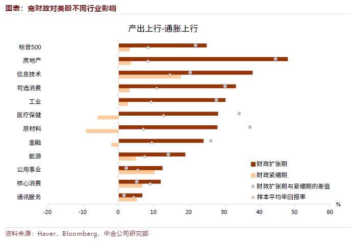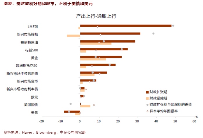 上周四(5月27日)美国总统拜登公布了6万亿美元预算方案,深化了“大财政”的执政理念。在《大财政重启,低通胀一去不回》中,我们论述了欧美财政思维发生了根本转变,财政的重要性正在系统性提升。政府对财政的依赖以及货币政策配合财政的力度均为过去三十年从未有过的现象。“大财政”对资产价格将带来怎样的影响?根据《大财政重启,资产定价大变局》中的分析,在通胀和产出均上行的背景下,宽财政通过需求进一步拉动尤其利好铜(预算方案公布当天铜大涨3%)和股市,而令美债和美元雪上加霜。具体到股市板块,宽财政利好房地产、工业、原材料(通过基建支出),也利好可选消费和医疗保健(通过福利性、功能性支出)。