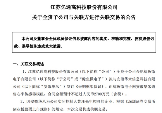 事实上,华米科技和亿通科技的结缘始于今年年初——1月,华米科技以9.959亿元人民币的现金对价,收购亿通科技29.99%的少数股权,目前两家公司的实际控制人均为黄汪。