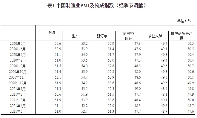 5月份,中国制造业采购经理指数(PMI)为51.0%,微低于上月0.1个百分点,继续位于临界点以上,制造业保持平稳扩张。