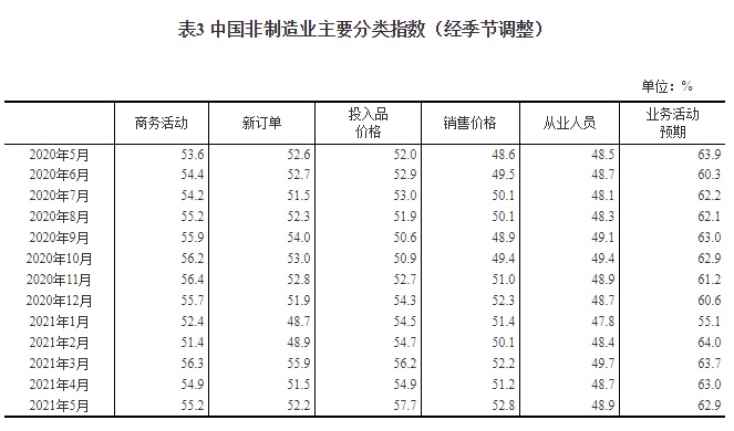 5月份,非制造业商务活动指数为55.2%,较上月上升0.3个百分点,非制造业扩张步伐有所加快。