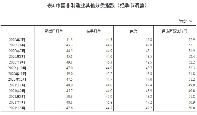 供应商配送时间指数为47.6%,比上月下降1.1个百分点,低于临界点,表明制造业原材料供应商交货时间进一步延长。