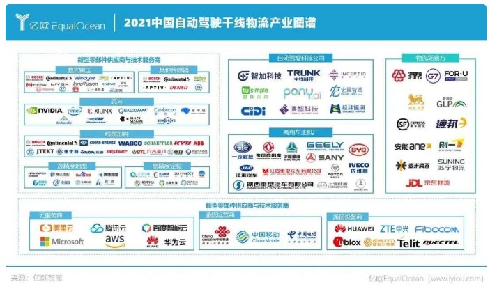 自动驾驶科技公司、商用车主机厂、物流场景方构成了自动驾驶干线物流产业的关键三方,新型零部件与技术服务供应商则是自动驾驶干线物流产业的重要支撑。