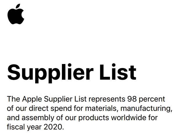 智通财经APP获悉,苹果公司(AAPL.US)在其官方网站公布最新《2021年度供应商责任进展报告》,其中包括了最新的2020年供应链厂商名单。供应商名单列出了参与苹果产品生产的供应商,覆盖范围占 2020 年苹果采购额的98%或更多。