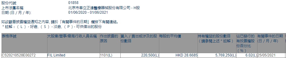 Limited增持春立医疗(01858)22.05万股,每股作价28.67港元,总金额约为632.14万港元。增持后最新持股数目约为576.93万股,最新持股比例为6.02%。
