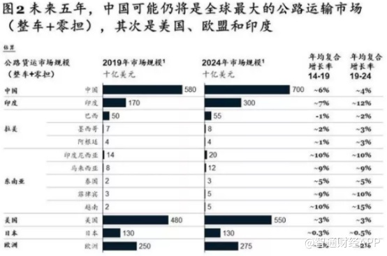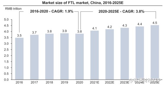 据智通财经APP了解,整车运输市场是公路货运市场中最大的细分市场,在2020年时约占公路货运市场的60%,并预计2025年市场规模将从2020年的3.8万亿元增长到4.5万亿元,复合年增长率为3.8%。