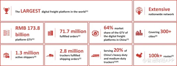 招股书显示,2020年满帮全年GTV(平台总交易额)达到1738亿元,约占中国数字货运平台GTV总量的64%;订单量达7170万单,共计280万卡车司机在平台上完成货运订单,约占中国中重型卡车司机的20%,公司现已成为全球领先的线上数字货运平台。