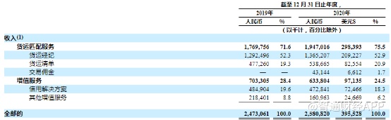 从具体业务来看,现阶段满帮收入主要来源于其核心的货运匹配服务及增值服务两方面。其中货运匹配服务带来的营收从17.7亿元进一步增长至19.5亿元,同比增长10%;而在2020年,增值服务也为满帮带来6.3亿元营收,贡献近1/4的总营收占比。