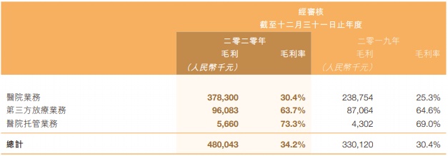 分项来看,2020年海吉亚医疗的医院业务、第三方放疗业务、医院托管业务的毛利率分别为30.4%、63.7%、73.3%。相比而言,医院业务目前毛利率较另两大业务为低,但后期随着新纳入医院逐步进入成熟期,该业务固定成本有望进一步摊薄,盈利能力有望继续走强。