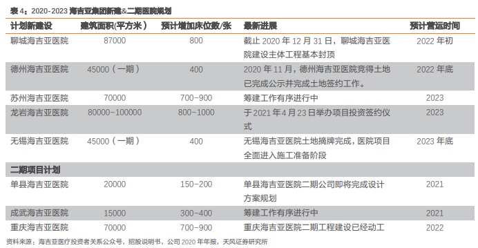 在供需错配的背景下,海吉亚医疗的未来成长空间广阔。智通财经APP了解到,目前海吉亚医疗旗下12家医院和17家放疗中心全部位于二线、三线及以下城市。同时,公司正在新建或处于二期规划的项目多达八处,覆盖城市包括聊城、德州、苏州、龙岩、无锡、单县、成武和重庆,以上项目将在2021年-2023年内陆续投入运营,届时预计增加床位数将超过4000张。