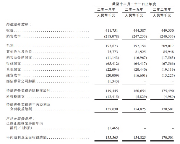 招股书显示,公司主要从学校学生支付的主营业务及继续教育课程学费及主营业务寄宿费中取得收益。截至2018年、2019年及2020年12月31日止年度,公司从持续经营业务产生的总收益分别为人民币4.118亿元、人民币4.444亿元及人民币4.494亿元。持续经营业务的溢利分别为人民币1.37亿元、人民币1.548亿元及人民币1.705亿元。