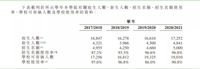 因此,在学费增加困难之下,通才教育想要扩大收入,更多则需要依赖规模扩张,来扩大招生数量。但就是这个招生规模目前正成为公司掣肘所在—通才教育的学校承载量基本达到饱和。最近两个学年,其招生名额使用率分别为96.6%和96.8%。目前,通才教育两个校区,总面积约481504平方米。在承载量上,最近两个学年学校可容纳人数大幅增长,已超过19000人。但最近一个学年,学校使用率已达90.8%。