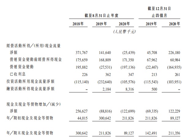 截至2020年8月31日,通才教育的现金及现金等价物为8912.7万元,而截至2019年8月31日这一数字为2.12亿元,一年间缩水了57.9%。而2018年则更是超过3亿元,2020年与2018年相比缩水了超7成,而截至2020年12月31日,这一数字重回2.11亿元大关。