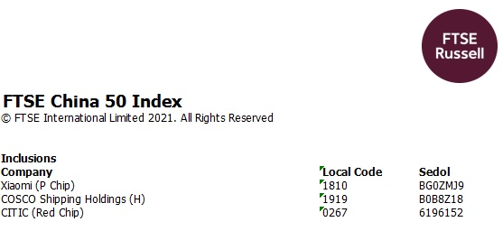 智通财经APP获悉,富时罗素宣布对富时中国50指数、富时中国A50指数等指数季度审核变更,此次变更将于2021年6月18日收盘后生效。