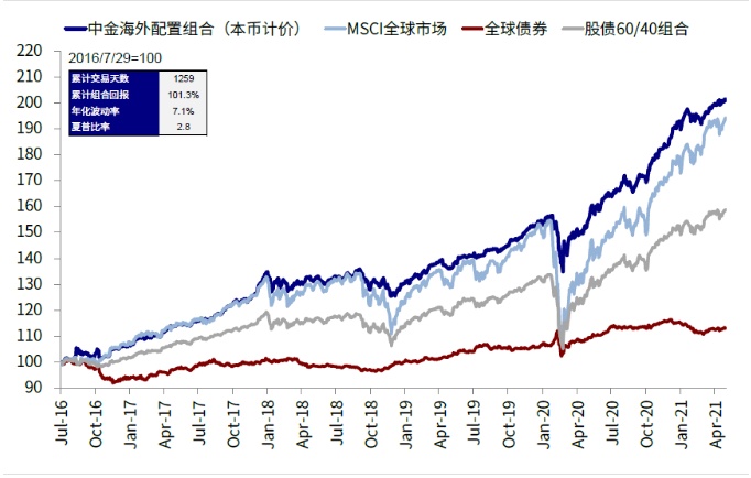 我们海外资产配置组合5月上涨1.08%(本币计价),表现略低于全球股市(1.15%,MSCI全球指数,美元计价)和大宗商品(2.64%),但好于全球债市(0.55%,美银美林全球债券指数,美元计价)和股债60/40组合(0.92%)。自2016年7月成立以来,该组合累积回报101.3%,夏普比率2.8。分项看,欧洲股市和大宗商品是组合上涨的主要贡献。我们在5月初小幅下调美股(但维持超配)并加至新兴(但整体偏低)的策略回过头来看是恰当的。