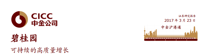 报告还提到,碧桂园2017 年销售目标(4000 亿元,同比增长30%)大概率会超额完成,公司2017年可售资源充裕,达到6160 亿元。 其中80%将会是新开盘,65%位于三四线城市,因此可以受益于三四线城市市场的强劲表现。中金认为,公司销售的高质量在2017 年仍可持续。