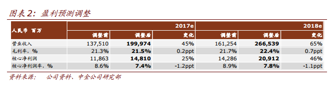 中金上调公司2017/2018 年核心净利润预测25%/46%至148.1 亿元/209.1 亿元,主要考虑2016/2017 年预售的结算。评级上调至“推荐”,目标价上调至8.58 港元,较2017 年预测 NAV 折价60%,分别对应11.1/8.0 倍2017/2018 年预测市盈率。公司目前股价分别对应8.5/6.2 倍2017/2018 年预测市盈率。